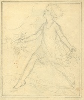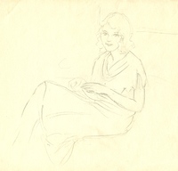 Unknown: While this is from a binder containing works on 8 ½” x 11” paper, mostly from 1950s, it is resembles the work she did around 1910 more in its subject matter.
