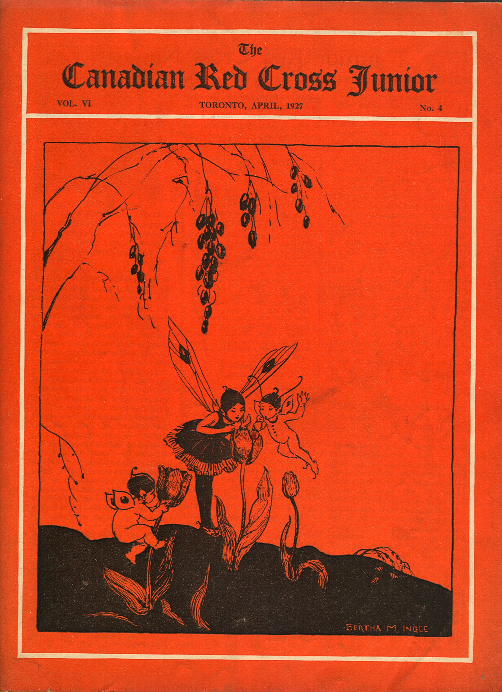 The illustration on this cover shows three fairies smelling tulips. They are depicted in black on an orange background.