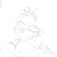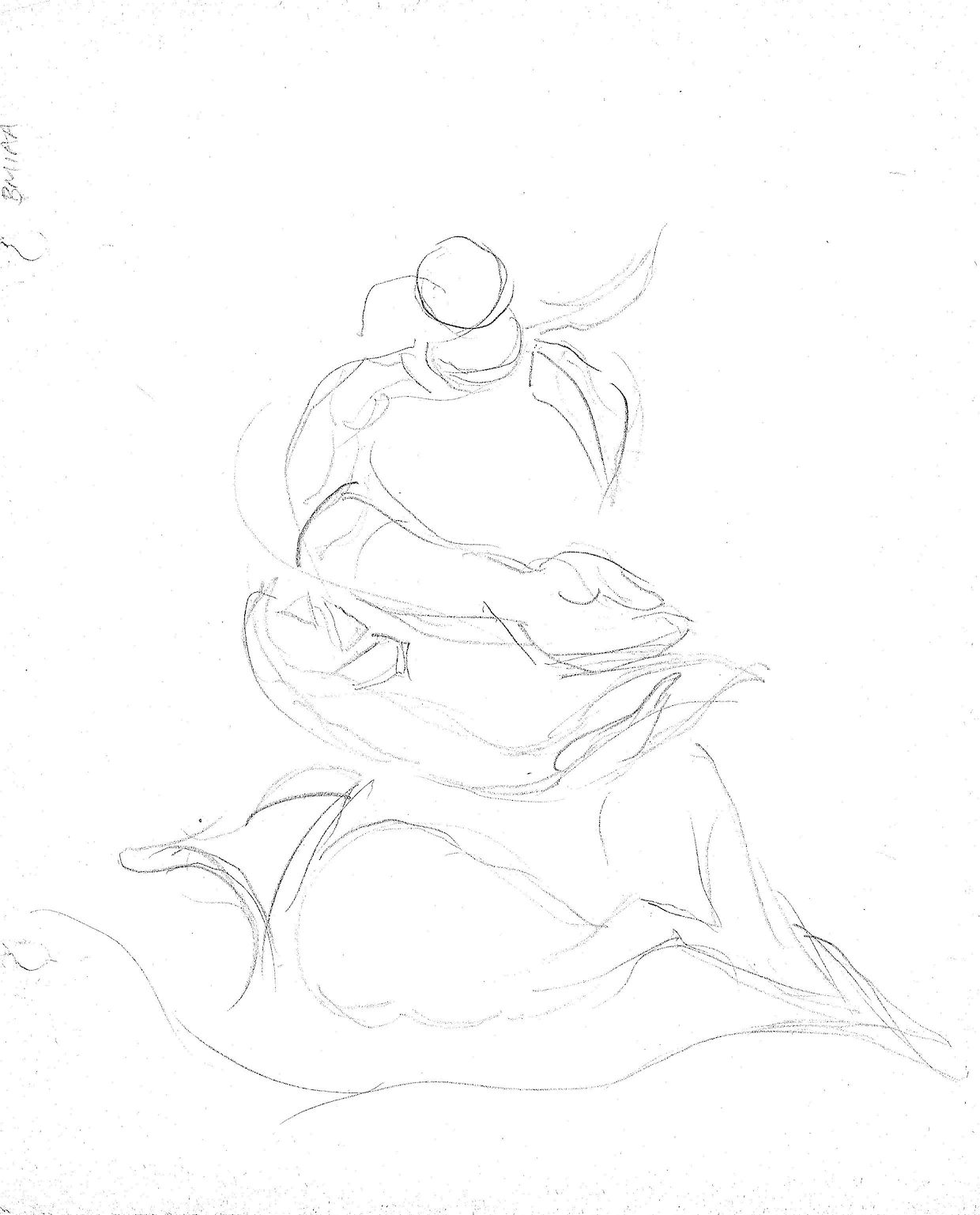 This piece shows what looks like a seated figure constructed using organic, leaf-like motifs.
