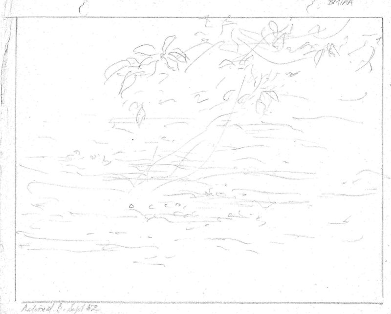 This piece is a quick sketch of a branch, coming down from the top left, over what looks like a stream of water.