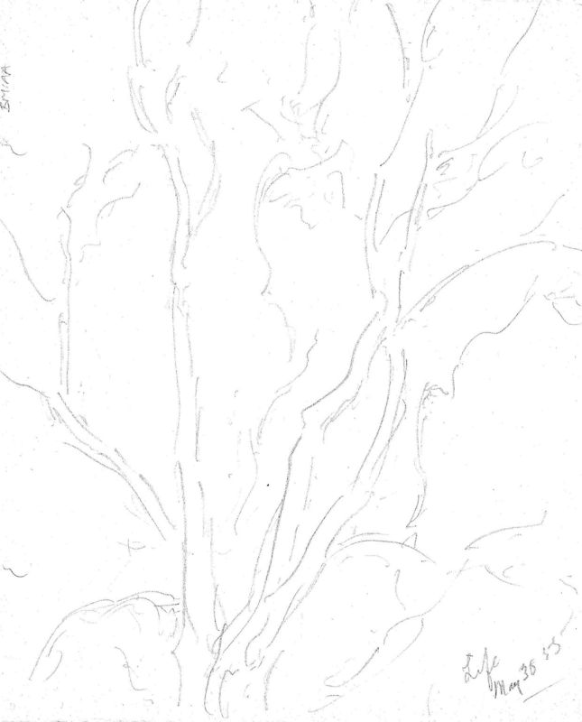 This piece shows what looks like the branches of a tree and is titled "Life" in the lower right corner alongside the date "May 30 '55."