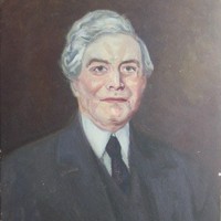 This piece shows the artist's father as an old man. He is shown from the shoulders up in a black, three-piece suit and tie. He looks up and slightly right of the viewer with his silver hair parted from the right.