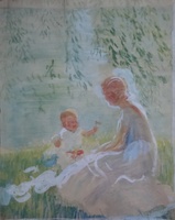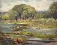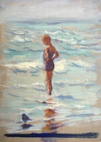c. 1950: This piece is painted directly on masonite which wasn't invented until 1935. So, it is most likely from the last two decades of Ingle's career.