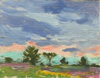 c.1910-1930: The flatness of the landscape and the age of the materials makes this look like it is from out west. Possibly a view from the train on one of her trips.